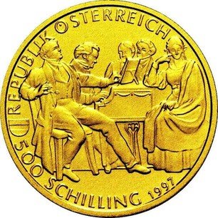 500 шиллингов 1997 года "Франц Шуберт", 8 гр.