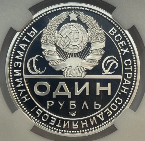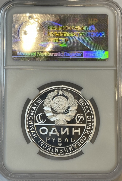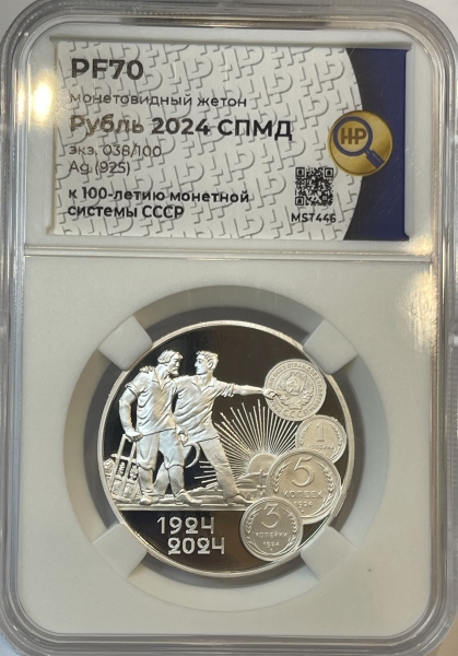Монетовидный серебряный жетон Рубль 2024г., К 100-летию монетной системы СССР, ТИРАЖ 100 шт., в слабе ННР PROOF 70