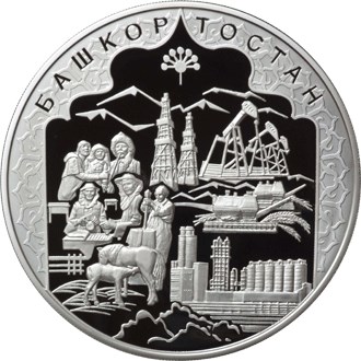 Серебряная монета 100 рублей "К 450-летию добровольного вхождения Башкирии в состав России",Башкортостан, Ag 925, 1 кг, 2007 год, ММД