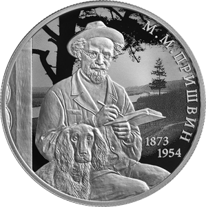 Серебряная монета 2 рубля "Писатель М.М. Пришвин, к 150-летию со дня рождения" Ag 925, 15,55г., 2023г., Proof