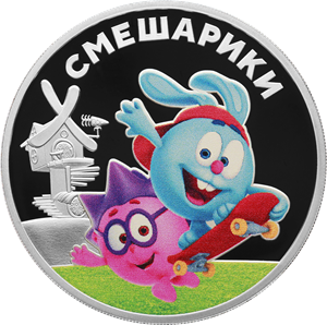 Серебряная монета 3 рубля "Смешарики" 31,1г., 2023г., Ag 925, Proof