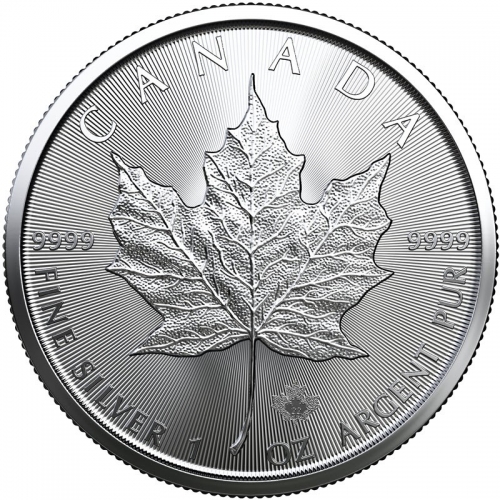 • Аверс: В центре - рельефное изображение кленового листа. По окружности надписи: CANADA (Канада), характеристика металла 9999 FINE SILVER 1 OZ ARGENT PUR (чистое серебро 999 пробы, масса монеты 1 унция = 31,10 гр.).