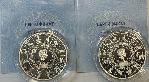 Серебряные монеты 5 долларов Знаки Зодиака Ag 925, Пруф Лайк