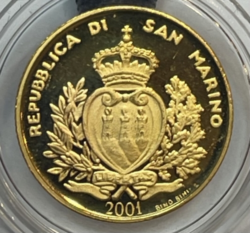 Золотая монета 1 скудо "Тициан" Сан-Марино 2001г., Au 900, 3,22г.