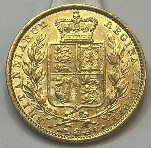 Золотая монета 1 соверен королева Виктория 1849г.,Au 917, 7,965г.