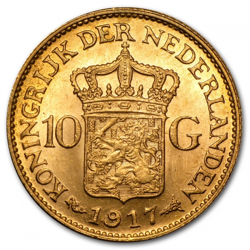 На реверсе изображен герб Нидерландов. Номинал монеты разделен и помещен по обе сторона герба: «10 G» (10 гульденов). По ободу помещена надпись: «KONINGRIJK DER NEDERRLANDEN» (Королевство Нидерландов). Внизу указан год выпуска монеты.