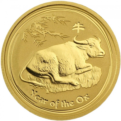 Инвестиционная золотая монета из серии "Лунный календарь" - год Быка выпущена Пертским монетным двором в 2009 году.