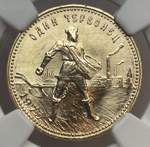 Монета золотой червонец Сеятель была запущена в чеканку в период финансовой реформы 1920-х годов. Создание эскиза изображения было поручено главному художнику Монетного двора, который разработал для червонца изображение крестьянина в процессе работы. Впервые такой образец был выпущен в 1923 году. При этом использовались все стандарты, разработанные еще в царские времена. Изначально монета использовалась лишь для совершения международных финансовых операций и находилась в обиходе исключительно городских жителей.