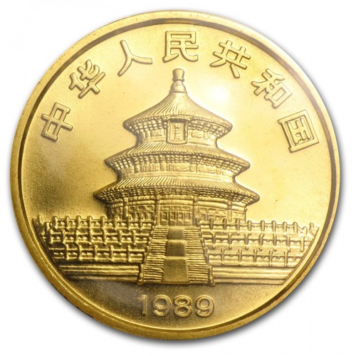 Золотая монета Китая 100 юаней "Панда" 1 унция (31,1 грамм) 1989 год