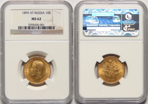 Золотая монета Николая II 10 рублей 1899 год состояние MS 62